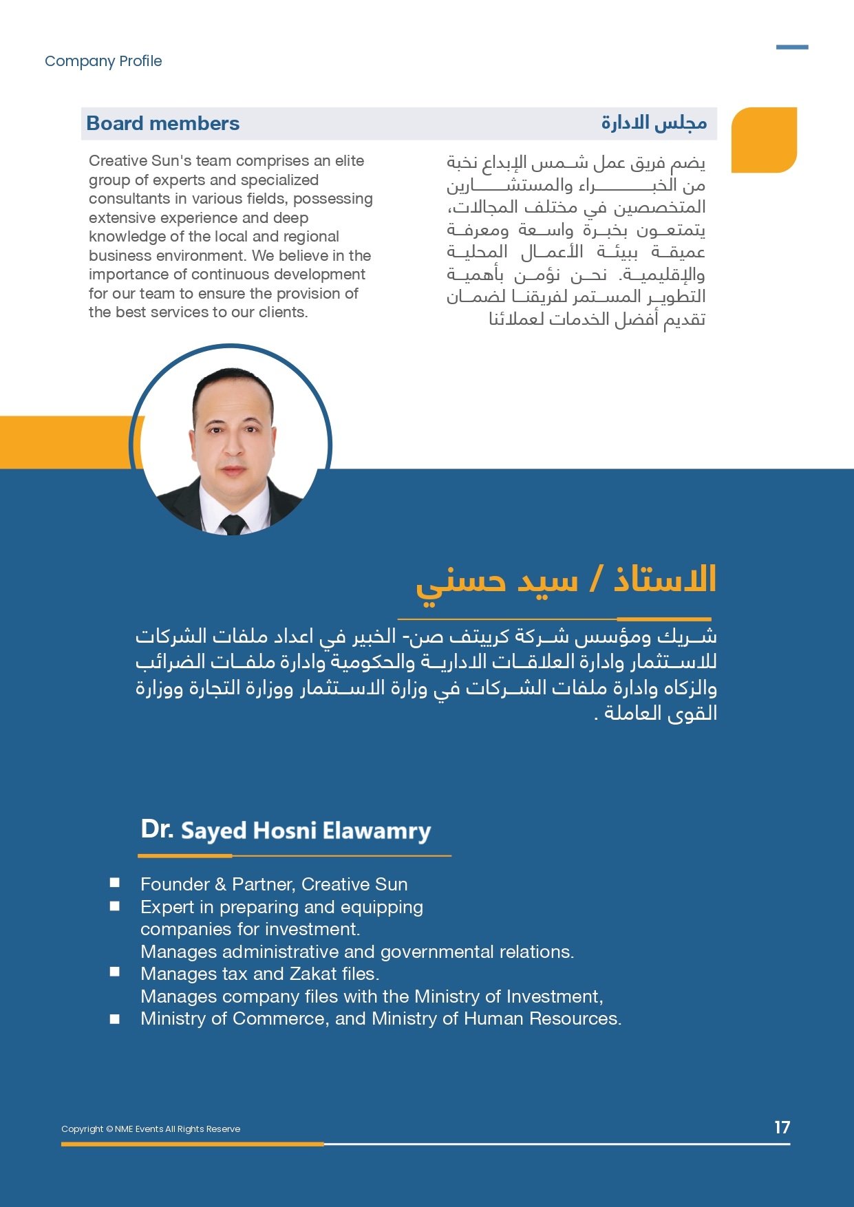 To deliver high-quality financial, administrative, technical, marketing, logistical, exhibition management, and tourism services through a specialized and qualified team and a stimulating work environment. We utilize the latest technologies and best global practices to ensure maximum added value for our clients and partners, and to contribute to the comprehensive economic development of the region.